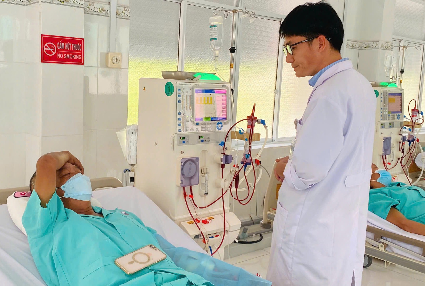 Bác sĩ thăm hỏi, động viên bệnh nhân chạy thận nhân tạo tại Trung tâm Y tế khu vực Chơn Thành, Đồng Nai. Ảnh: Văn Nguyễn