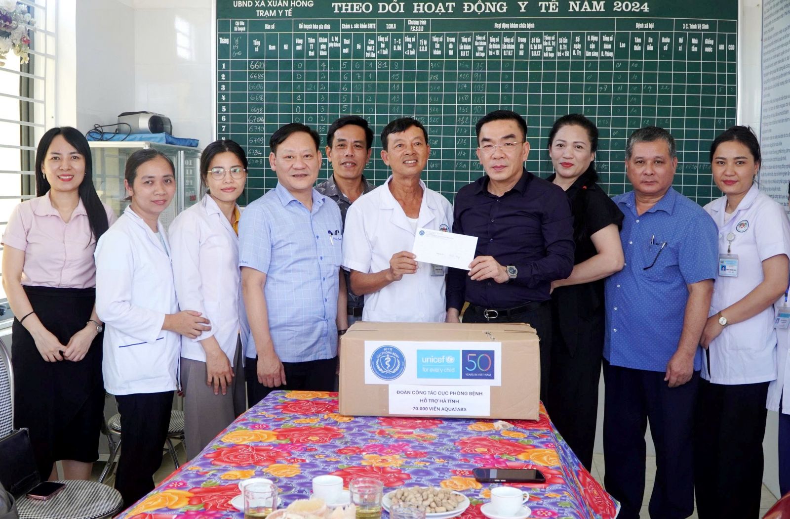 Trước đó, đoàn cũng hỗ trợ 70.000 viên Aquatabs cho Trạm Y tế xã Xuân Hồng (Nghi Xuân); làm việc với Trung tâm Y tế Thạch Hà về công tác phòng, chống HIV/AIDS.
