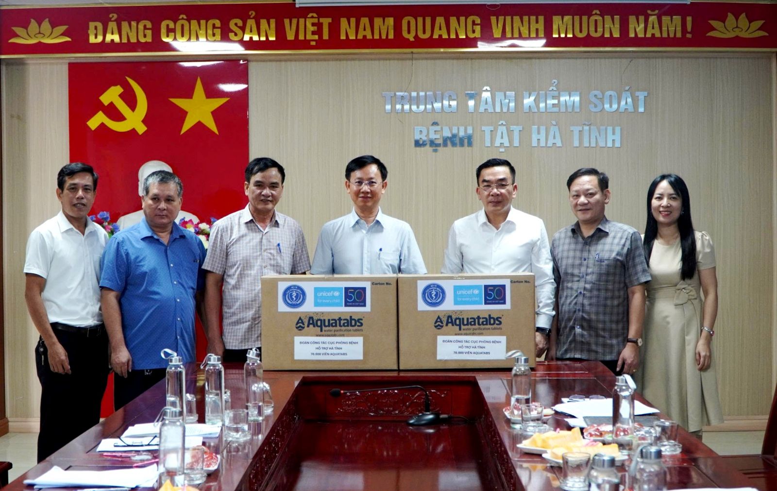 Cục Phòng bệnh - Bộ Y tế trao tặng 140.000 viên Aquatabs và tài liệu truyền thông cho CDC Hà Tĩnh