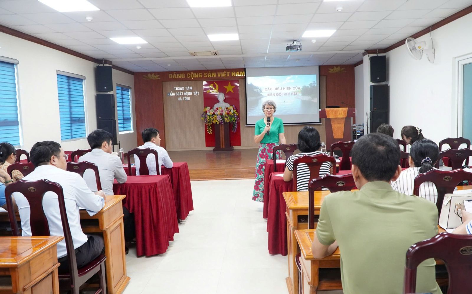 Phát biểu khai mạc, Ths Nguyễn Chí Thanh – Giám đốc CDC Hà Tĩnh nhấn mạnh: “biến đổi khí hậu đang tác động ngày càng rõ nét đến sức khỏe cộng đồng, làm gia tăng nguy cơ bùng phát dịch bệnh, ảnh hưởng đến năng lực đáp ứng của hệ thống y tế. Vì vậy, việc trang bị kiến thức, kỹ năng ứng phó cho cán bộ y tế tuyến cơ sở là nhiệm vụ cấp thiết, góp phần nâng cao khả năng phòng ngừa, thích ứng và bảo vệ sức khỏe nhân dân”.