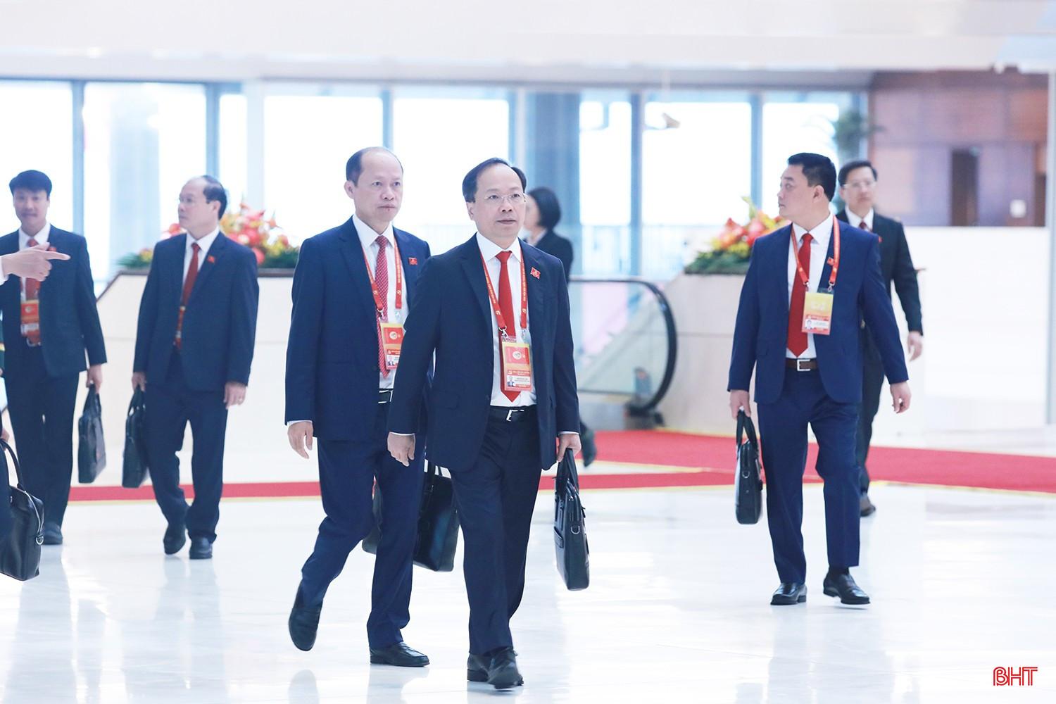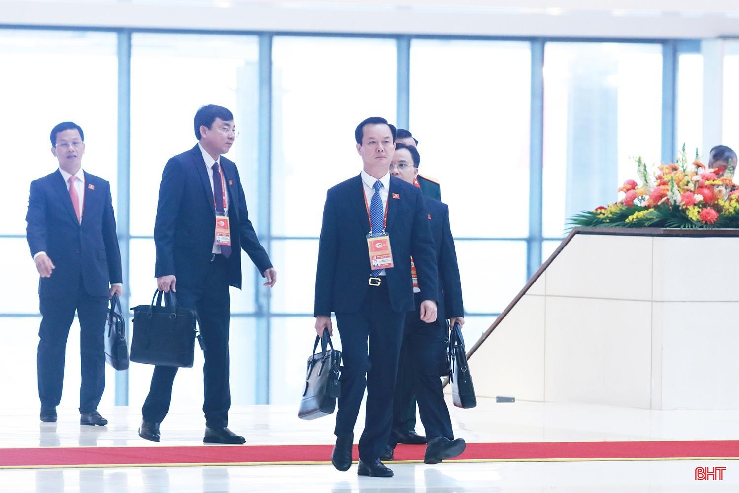 Đồng chí Nguyễn Duy Lâm - Bí thư Tỉnh ủy, Trưởng đoàn đại biểu Hà Tĩnh và đồng chí Nguyễn Hồng Lĩnh đi vào hội trường.