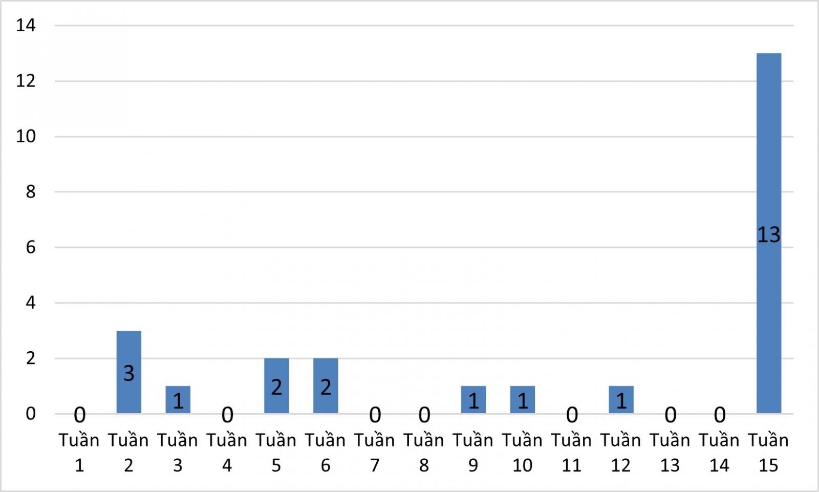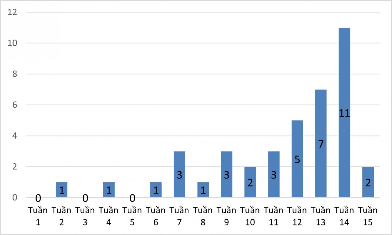 Biểu đồ 2. Phân bố số mắc Tay chân miệng theo tuần tại Hà Tĩnh, năm 2026