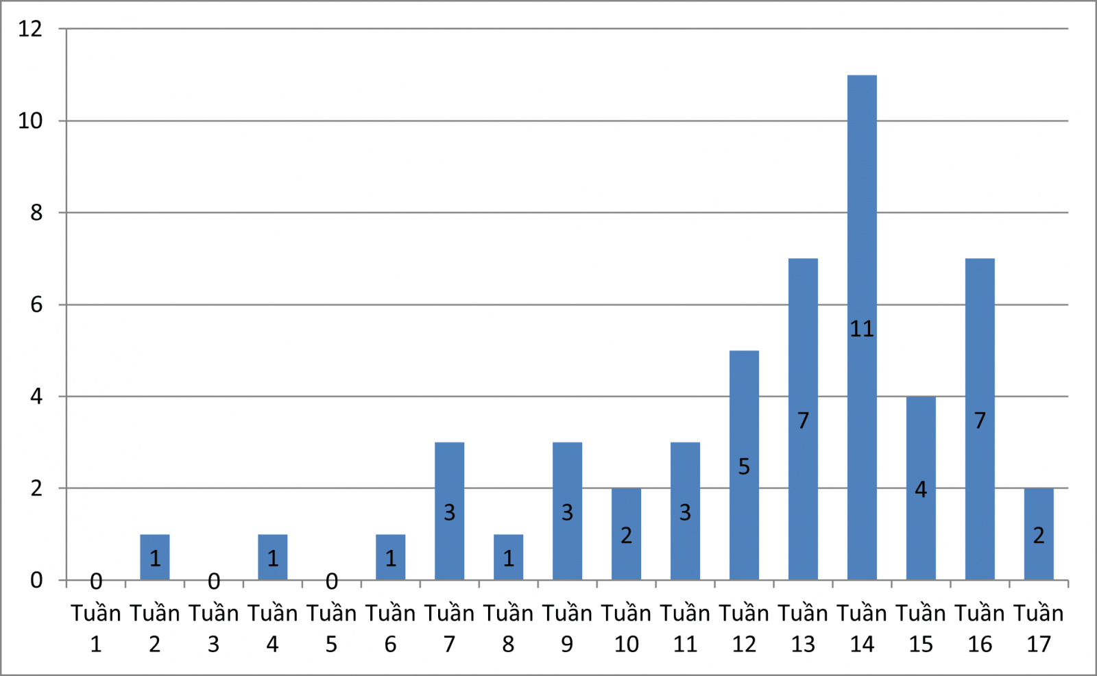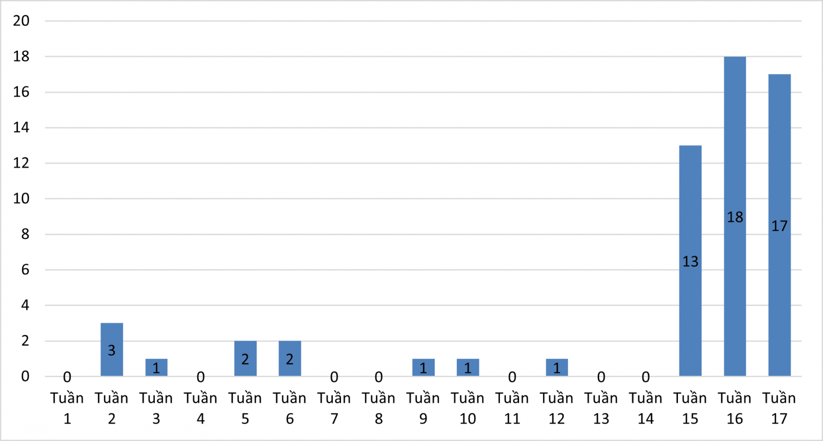 Số ca mắc giảm 1 ca so với tuần trước và tăng 17 ca so với cùng kì năm 2025.